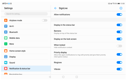 Set up call notifications on both Android and Apple by going to Settings > Notification management, selecting SignLive, and enabling all options.