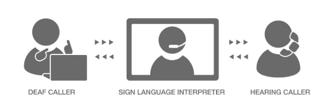 Video Relay Service (VRS) connects deaf and hard of hearing people with hearing telephone callers through a British sign language interpreter, video equipment, and a reliable internet connection.